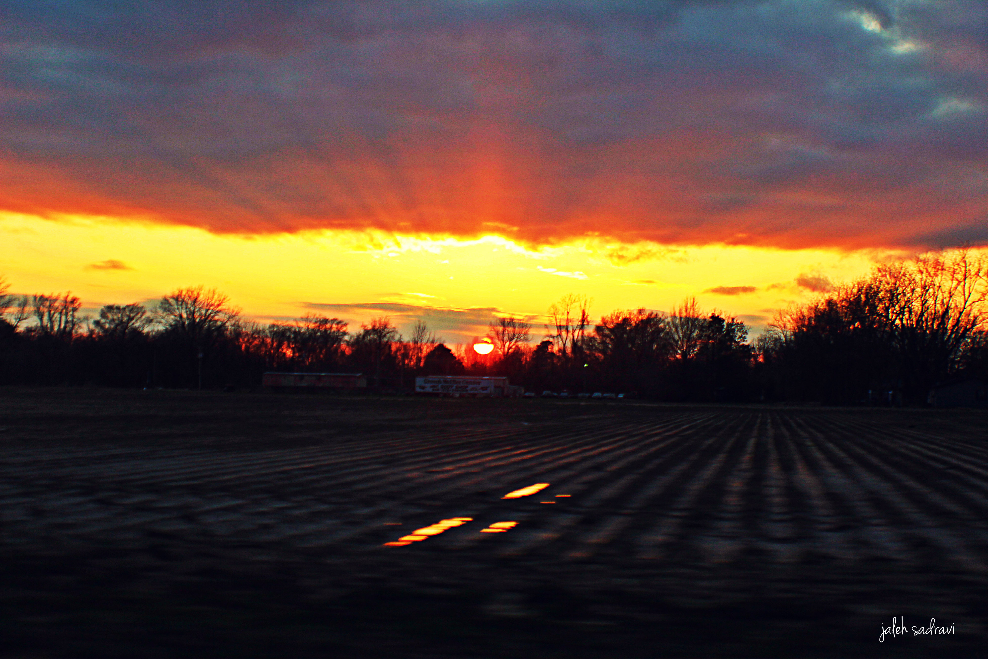 fire sky Posted on March 6, 2013 by jaleh I know this photo is slightly blurry but I had my camera out the window while the car was speeding through the delta. The sunset was beautiful and I just had to capture the rays as they ignited the evening sky with such glorious colors. Share this: Click to share on Facebook (Opens in new window) Facebook Click to share on X (Opens in new window) X Like Loading... Related