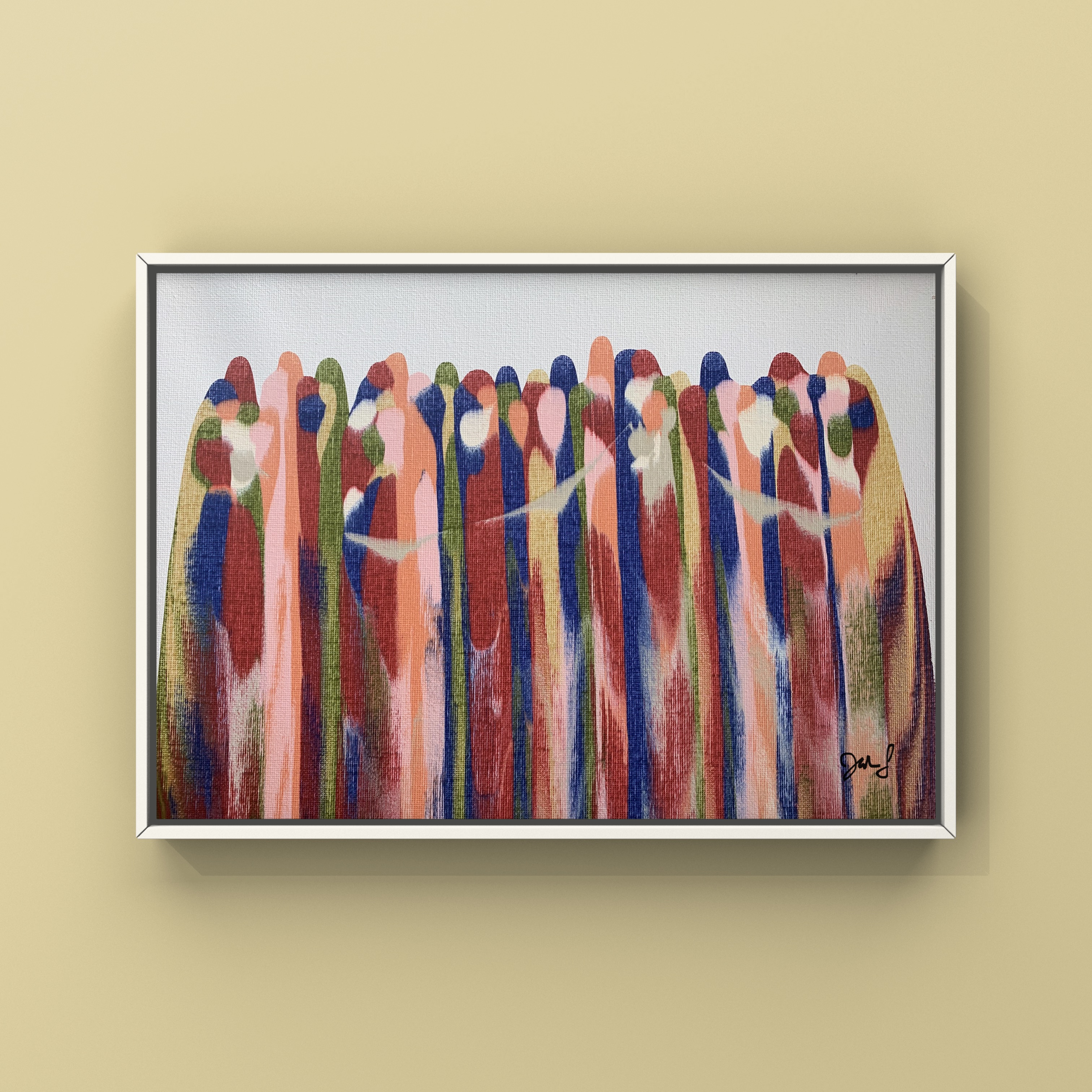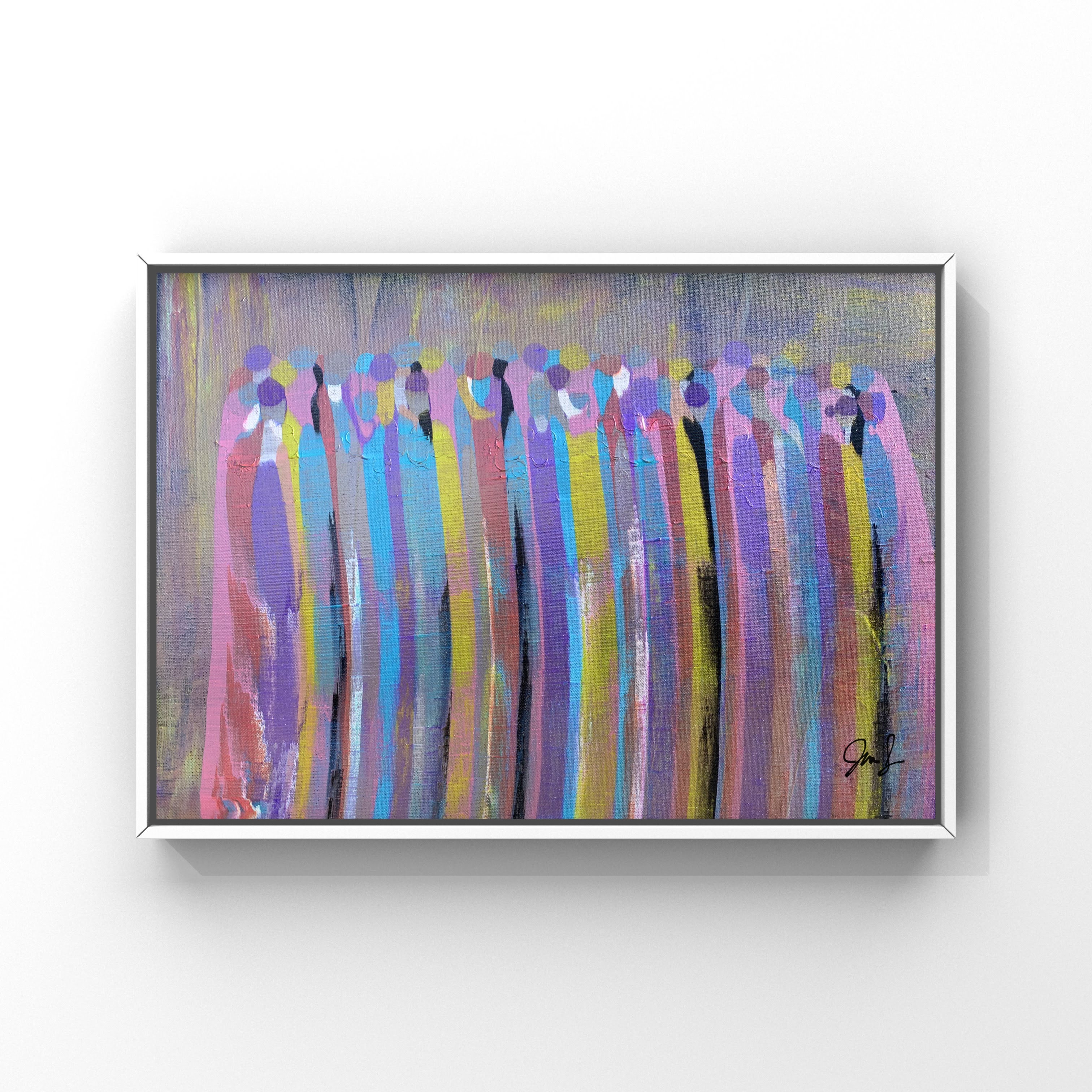 Most of my abstract pieces feature an acrylic scraping technique. My original paintings can be purchased at JalehsArt.com.